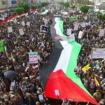 وامتدت الحشود الجماهيرية الكبيرة بطول شارع الستين الغربي، حاملة الإعلام اليمنية والفلسطينية، ولا فتات مناهضة للسياسة الأمريكية في المنطقة.