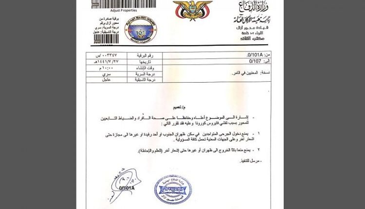 وفي وثيقة مسربة قامت السعودية بفرض عزلا جماعيا على الوية تابعة للمرتزقة في عدد من جبهات الحدود بعد تفشي مرض الكورونا في اوساطهم .