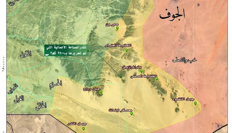 تتواصل الانتصارات التي يحققها ابطال الجيش واللجان الشعبية في عدد من جبهات القتال في محافظة الجوف خلال الثلاثة الاشهر الماضية خلال عمليات عسكرية واسعة على مرتزقة العدوان في مديريات الحزم واطراف مديرية المتون وكذالك المصلوب وخب والشعف والغيل كانت نتاجئها تطهير مديرية الغيل والمتون والمصلوب والحزم ومساحة واسعة من مديرية خب والشعف .