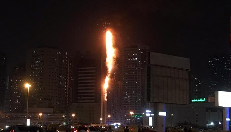 تم إندلاع حريق ضخم في إحدى الأبراج في مدينة الشارقة بالامارات العربية المتحدة
