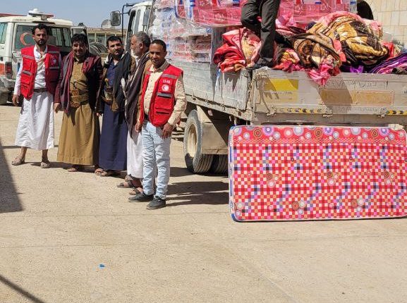 الهلال الأحمر اليمني فرع الجوف يوزع عددًاًّ من الفرش لمصلحة السجون بالمحافظة