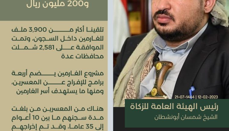 رئيس الهيئة العامة للزكاة الشيخ شمسان أبونشطان : نطلق اليوم المرحلة السادسة من مشاريع الغارمين بمبلغ 3 مليارات ريال لعدد 1500 من المعسرين