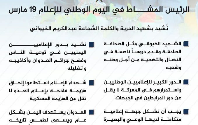 في اليوم الوطني للإعلام ..# الرئيس ـ المشاط يشيد بشهيد الحرية الخيواني