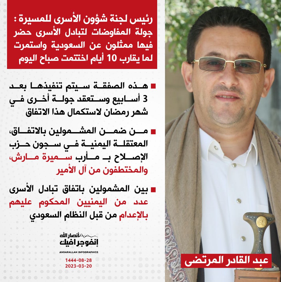 🇾🇪 عاجل | رئيس لجنة شؤون الأسرى عبدالقادر المرتضى : الخلافات بين مرتزقة العدوان حالت دون الوصول إلى اتفاق شامل على قاعدة الكل مقابل الكل