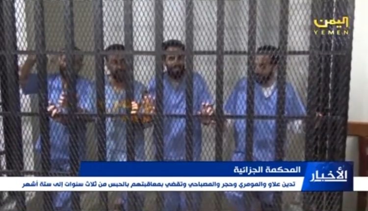🇾🇪 هـام | المحكمة الجزائية تدين علاو والمومري وحجر والمصباحي وتقضي بمعاقبتهم بالحبس من ثلاث إلى ستة أشهر