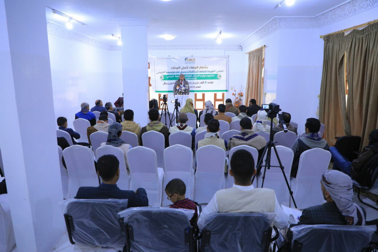 دشنت الهيئة العامة للزكاة اليوم بصنعاء ، بالتنسيق مع مؤسسة الجرحى ، مشروع توزيع السلال الغذائية النقدية لعدد 6 آلاف جريح “الفئة الثانية” بتكلفة إجمالية بلغت 150 مليون ريال تحت شعار ” الوفاء لأهل الوفاء”.
