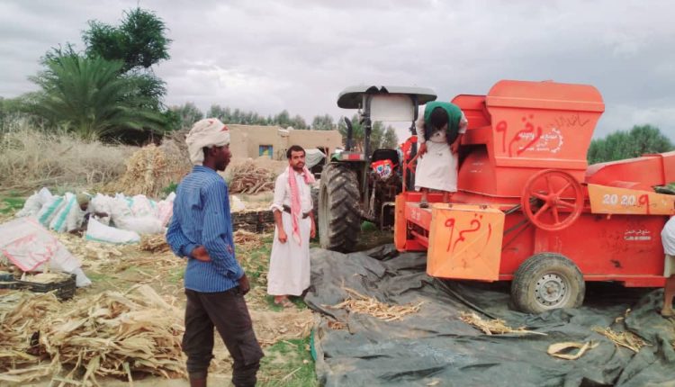 مكتب الزراعة بمديرية المتون يدشن حصاد موسم الذره الشامية