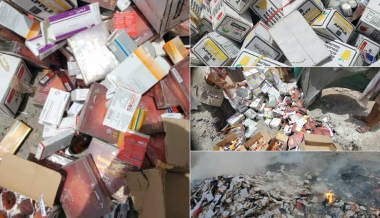 مركز الحزم الجمركي م/ الجوف يتلف ما يقارب سبعه طن ادويه والعديد من المواد الغذائيه المخالفه والمنتهية الصلاحيه .