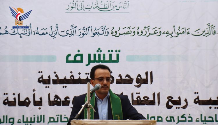 وأوضح عبدالجبار أحمد، أن الله تعالى وعد من يتمسك بالرسول صلى الله عليه وآله وسلم ومن يرفع ذكره، بالخير والفلاح والعزة والنصر في الدنيا والآخرة .. مشيدا بالجهود المبذولة من الوحدة التنفيذية لضريبة ريع العقارات في إقامة وتنظيم هذه الفعالية.