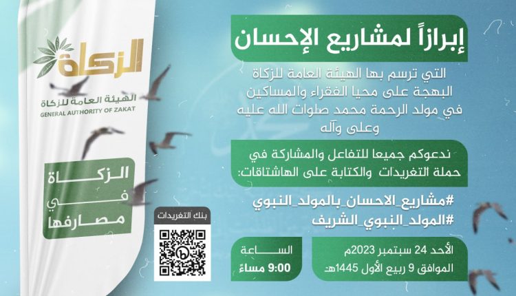 مساء اليوم.. انطلاق حملة تغريدات واسعة بالتزامن مع تدشين هيئة الزكاة لمشاريع الإحسان بذكرى المولد النبوي الشريف