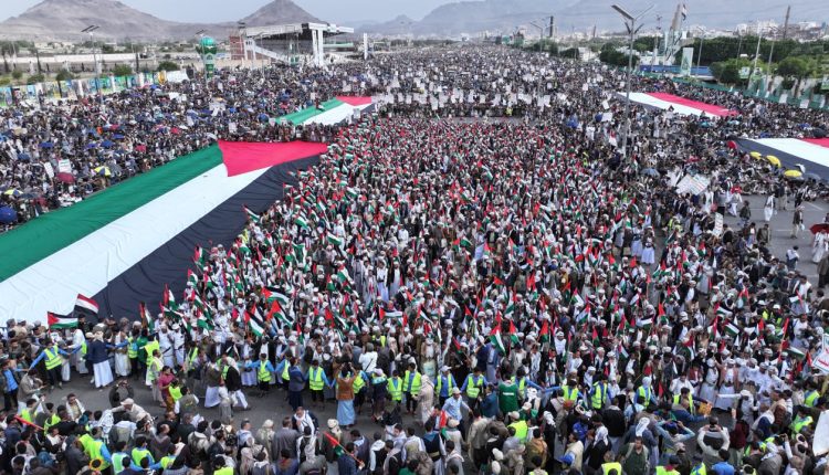 صنعاء.. عرسان العرس الجماعي الرابع لـ هيئة الزكاة يشاركون في مسيرة “مع غزة.. جبهات الإسناد ثبات وجهاد “
