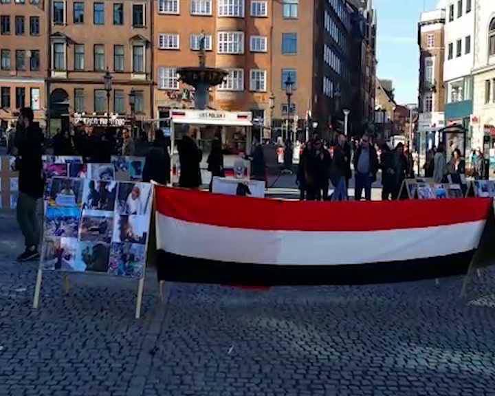 نظَّم عددٌ من أفراد الجالية اليمنية وقفةً احتجاجية ومعرض صور في مركز العاصمة الدنماركية كوبنهاغن رفضا للعدوان على اليمن.