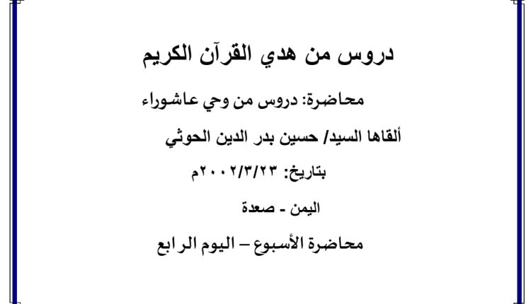 محاضرة : دروس من وحي عاشوراء: من الصفحة ( 10 ) إلى الصفحة ( 13 )