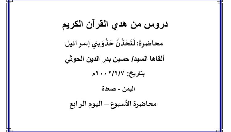 ألقاها السيد / حسين بدرالدين الحوثي بتاريخ:7/2/2002م اليمن – صعدة