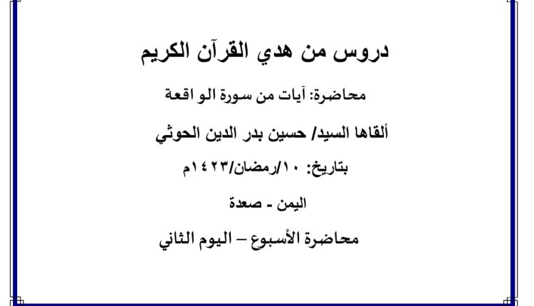 محاضرة الأسبوع – آيات من سورة الواقعة (اليوم الثاني)