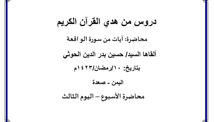 محاضرة الأسبوع – آيات من سورة الواقعة (اليوم الثالث)