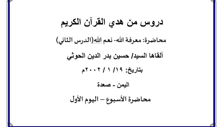 محاضرة: (معرفة الله- نعم الله- الدرس الثاني):من الصفحة ( 1 ) إلى الصفحة ( 4 )