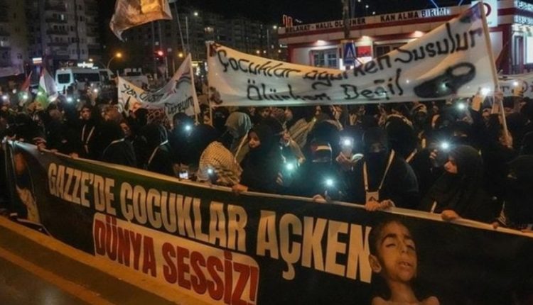 خرجت مظاهرة في ولاية ديار بكر وسيرت جنوب شرقي تركيا احتجاجا على الإبادة الجماعية التي تمارسها إسرائيل بحق الفلسطينيين في قطاع غزة.