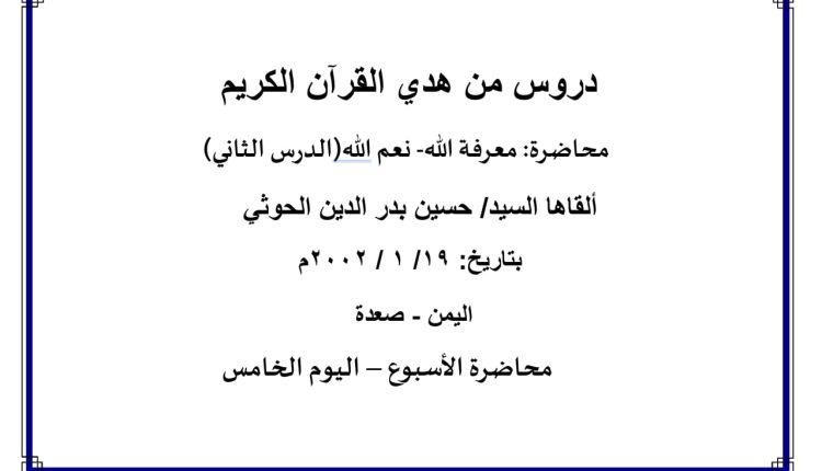 ألقاها السيد / حسين بدرالدين الحوثي بتاريخ: 19/1/2002م اليمن – صعدة