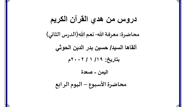 ألقاها السيد / حسين بدرالدين الحوثي بتاريخ: 19/1/2002م اليمن – صعدة