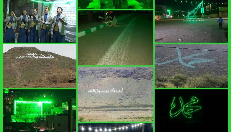 كما ازدانت المداخل الرئيسية والميادين العامة للمحافظة بالزين الضوئية والمصابيح الخضراء والأعلام واللافتات المعبرة عن الولاء والارتباط برسول الله صلى الله عليه وآله، لتشكل لوحة بديعة تعكس عمق حب اليمنيين لنبي الرحمة، وحرصهم على إحياء هذه المناسبة بما يليق بمكانتها العظيمة في وجدان الأمة.
