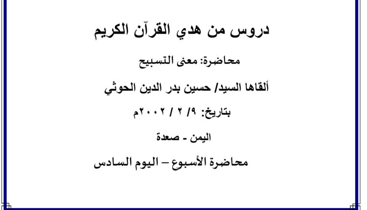 محاضرة الأسبوع – معنى التسبيح (اليوم السادس)