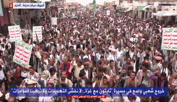 كما أكد المشاركون أن خروجهم المستمر في مسيرات مليونية إنما هو وفاء للمسجد الأقصى المبارك ونصرة للشعب الفلسطيني المظلوم، مشددين على أن العودة الصادقة إلى كتاب الله هي السبيل لمواجهة التضليل الصهيوني وإفشال مخططاته.