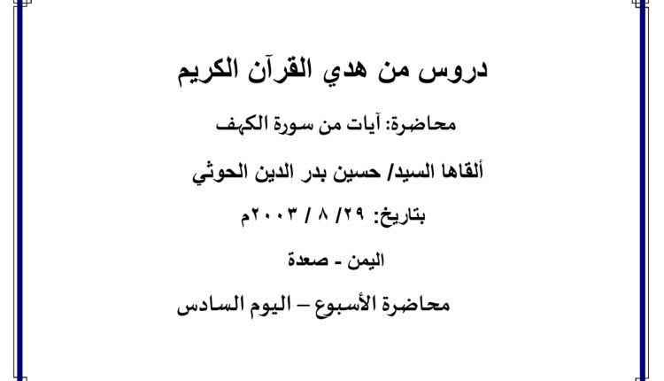محاضرة الأسبوع – آيات من سورة الكهف (اليوم السادس)