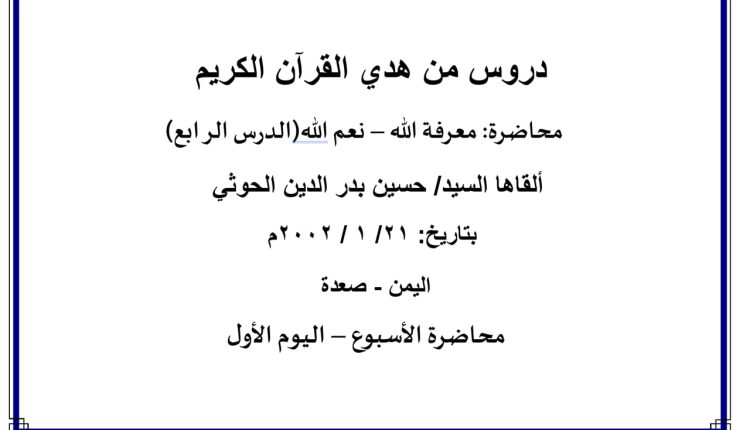 محاضرة: (معرفة الله نعم الله- الدرس الرابع): من الصفحة ( 1 ) إلى الصفحة ( 3 )