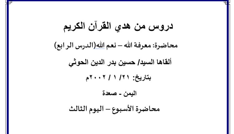 محاضرة: (معرفة الله نعم الله- الدرس الرابع): من الصفحة ( 5 ) إلى الصفحة ( 8 )