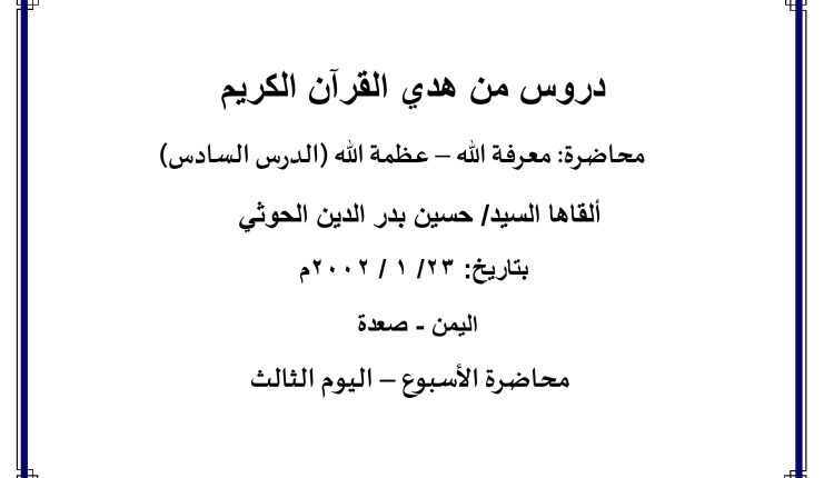محاضرة: (معرفة الله – عظمة الله- الدرس السادس): من الصفحة ( 5 ) إلى الصفحة ( 6 )