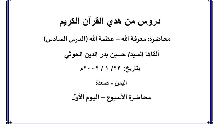 ألقاها السيد / حسين بدرالدين الحوثي بتاريخ: 23/1/2002م، اليمن – صعدة