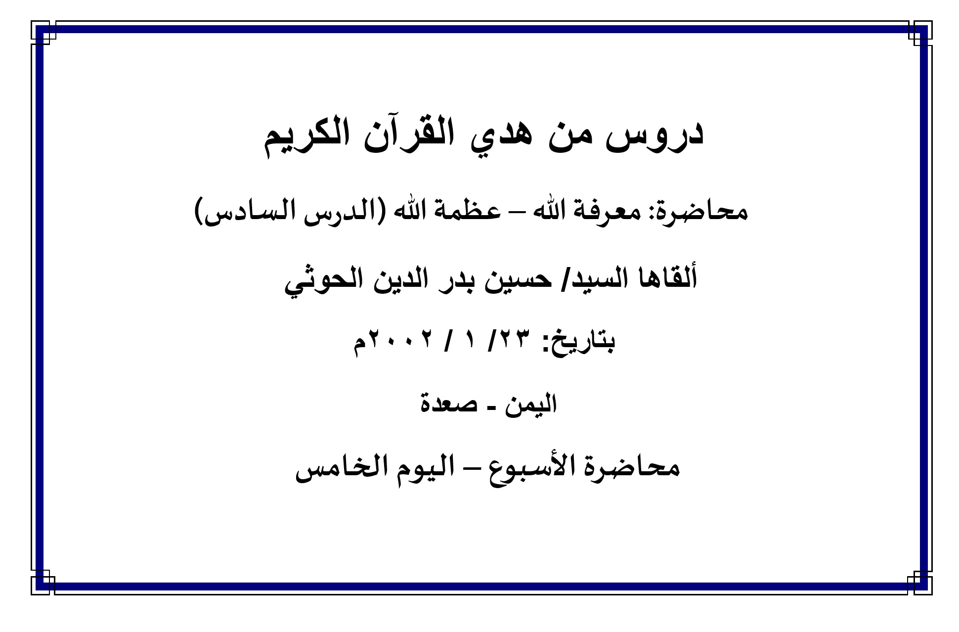 محاضرة: (معرفة الله – عظمة الله- الدرس السادس): من الصفحة ( 8 ) إلى الصفحة ( 10 )