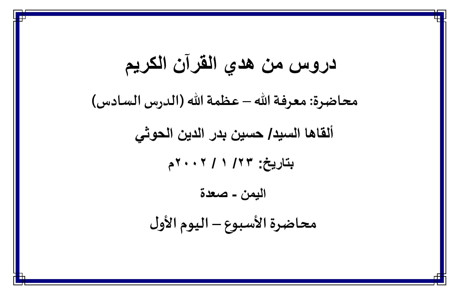 محاضرة: (معرفة الله – عظمة الله- الدرس السادس): من الصفحة ( 2 ) إلى الصفحة ( 3 )