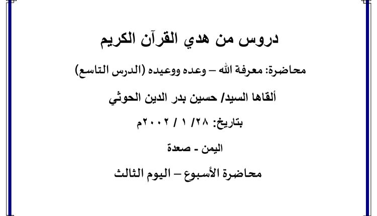 محاضرة: (معرفة الله – وعده ووعيده- الدرس التاسع): من الصفحة  ( 4 ) إلى الصفحة ( 5 )