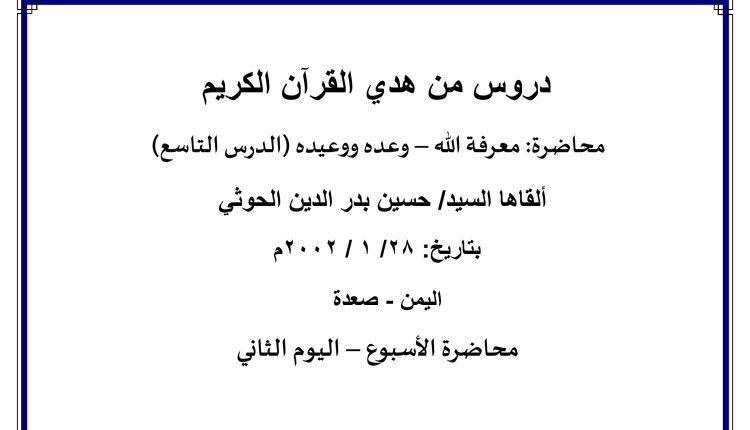 محاضرة: (معرفة الله – وعده ووعيده- الدرس التاسع): من الصفحة (3) إلى الصفحة (4)