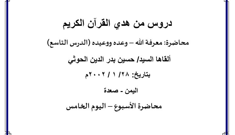 محاضرة: (معرفة الله – وعده ووعيده- الدرس التاسع): من الصفحة ( 6 ) إلى الصفحة ( 7 )