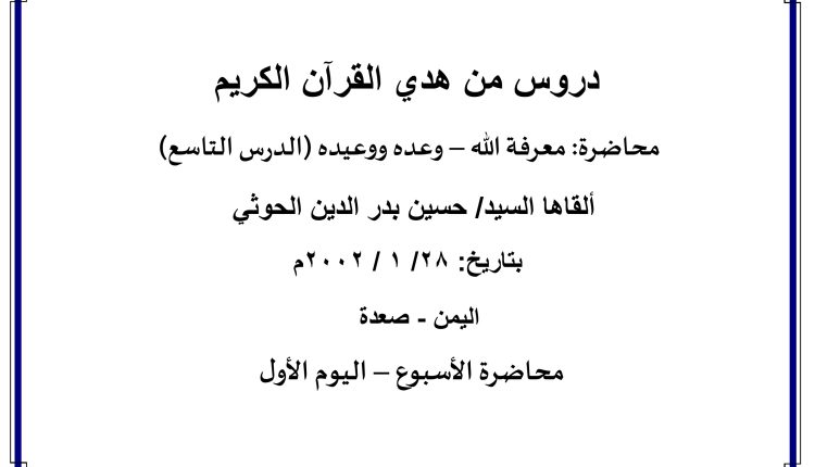 محاضرة: (معرفة الله – وعده ووعيده- الدرس التاسع): من الصفحة (2 ) إلى الصفحة ( 3 )