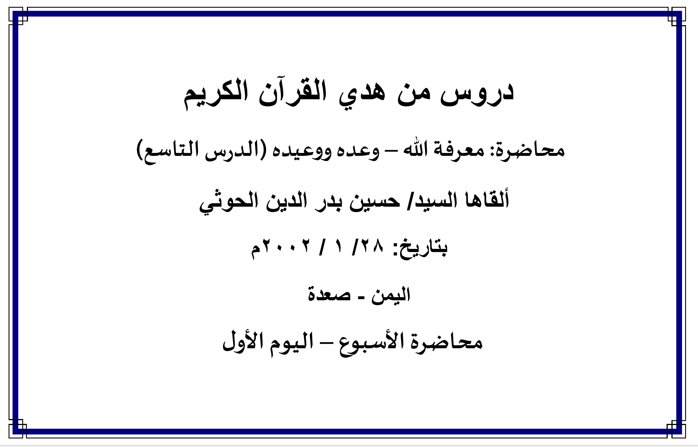 ألقاها السيد / حسين بدرالدين الحوثي بتاريخ: 28/1/2002م، اليمن – صعدة