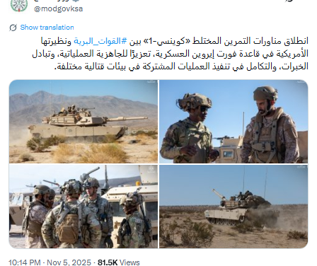 تدريبات سعودية–أمريكية في قاعدة فورت إيروين… تعزيز للتنسيق العسكري وسط توترات إقليمية متصاعدة