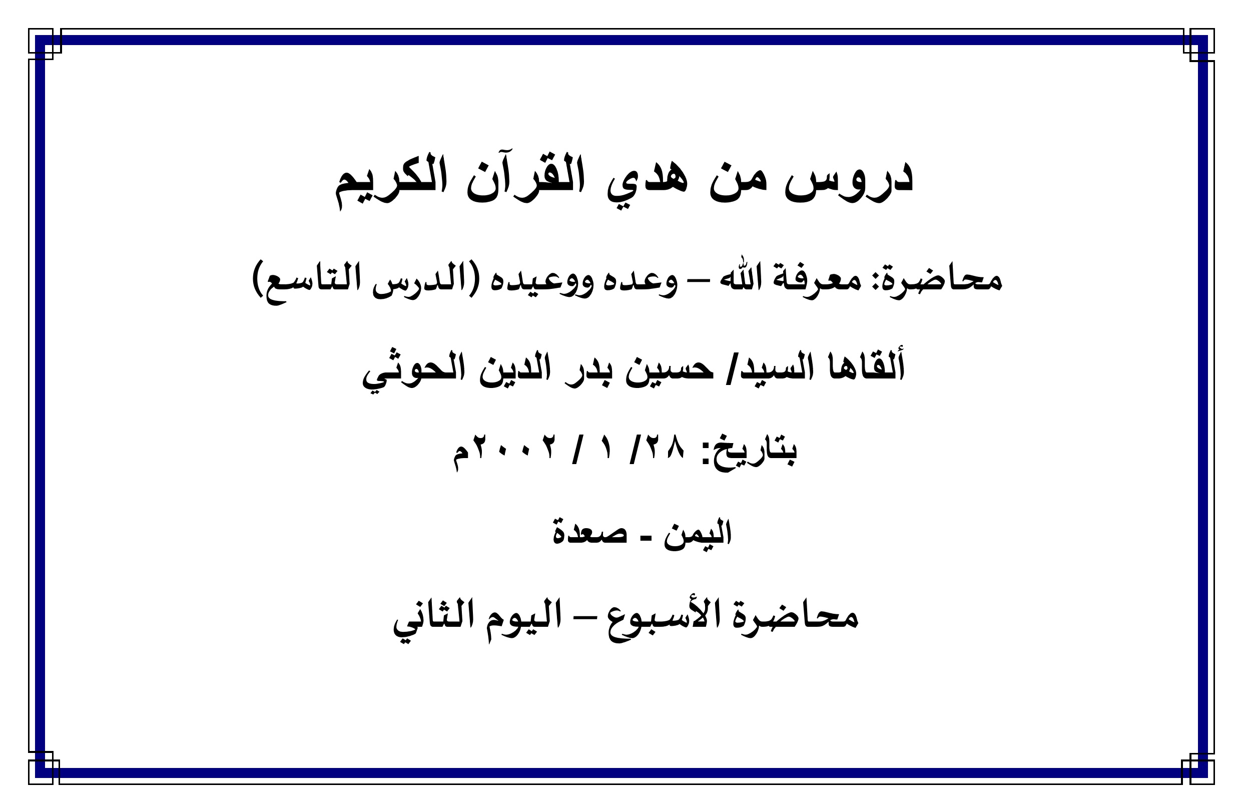 ألقاها السيد / حسين بدرالدين الحوثي بتاريخ: 28/1/2002م، اليمن – صعدة