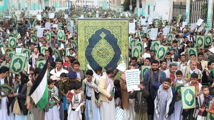 وتؤكد هذه الحشود الجماهيرية الواسعة، التي عمّت مختلف المحافظات، أن الشعب اليمني حاضر بثباته ووعيه في ميادين العزة والكرامة، ومتمسك بخيار الدفاع عن القرآن الكريم والمقدسات الإسلامية، ومساندة قضايا الأمة العادلة وفي مقدمتها القضية الفلسطينية. كما تعكس هذه المسيرات وحدة الموقف الشعبي، واستمرار حالة النفير والاستعداد لمواجهة التحديات، وإيصال رسالة واضحة للعالم برفض الإساءات المتكررة، والتأكيد على أن التمسك بالقرآن والهوية الإيمانية سيظل ركيزة أساسية في مواقف الشعب اليمني وخياراته.