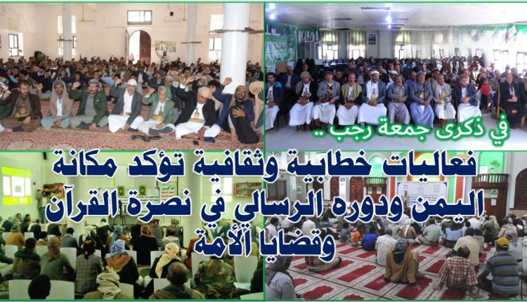 في ذكرى جمعة رجب .. فعاليات خطابية وثقافية تؤكد مكانة اليمن ودوره الرسالي في نصرة القرآن وقضايا الأمة