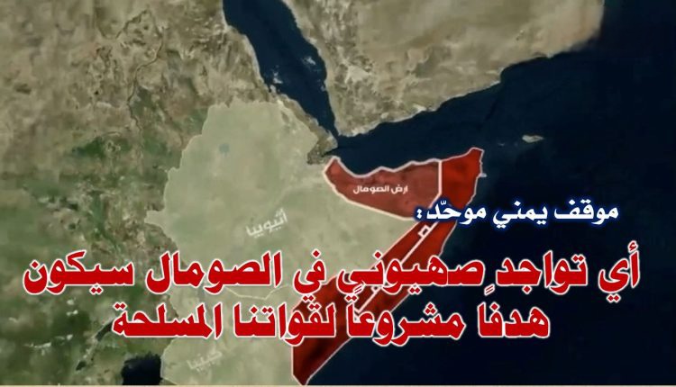 موقف يمني موحّد: أي تواجد صهيوني في الصومال سيكون هدفًا مشروعًا لقواتنا المسلحة