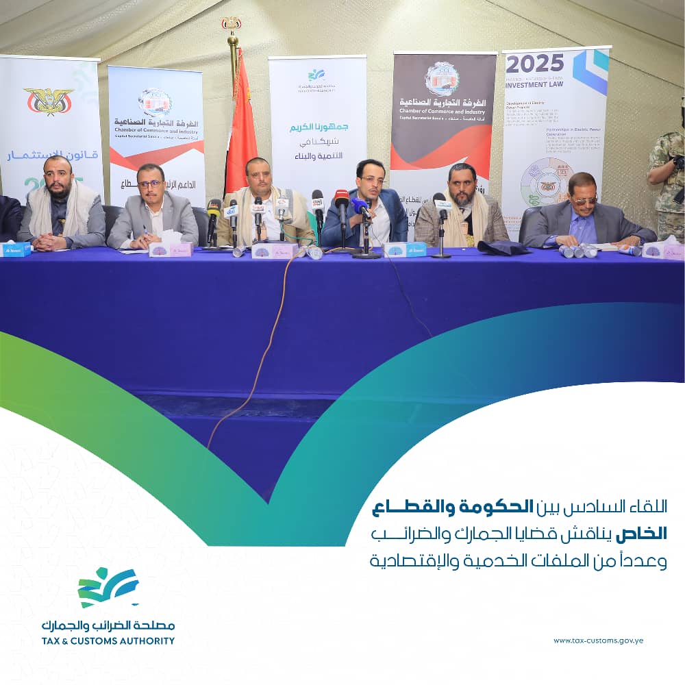 اللقاء السادس بين الحكومة والقطاع الخاص يناقش قضايا الجمارك والضرائب وعددًا من الملفات الخدمية والاقتصادية