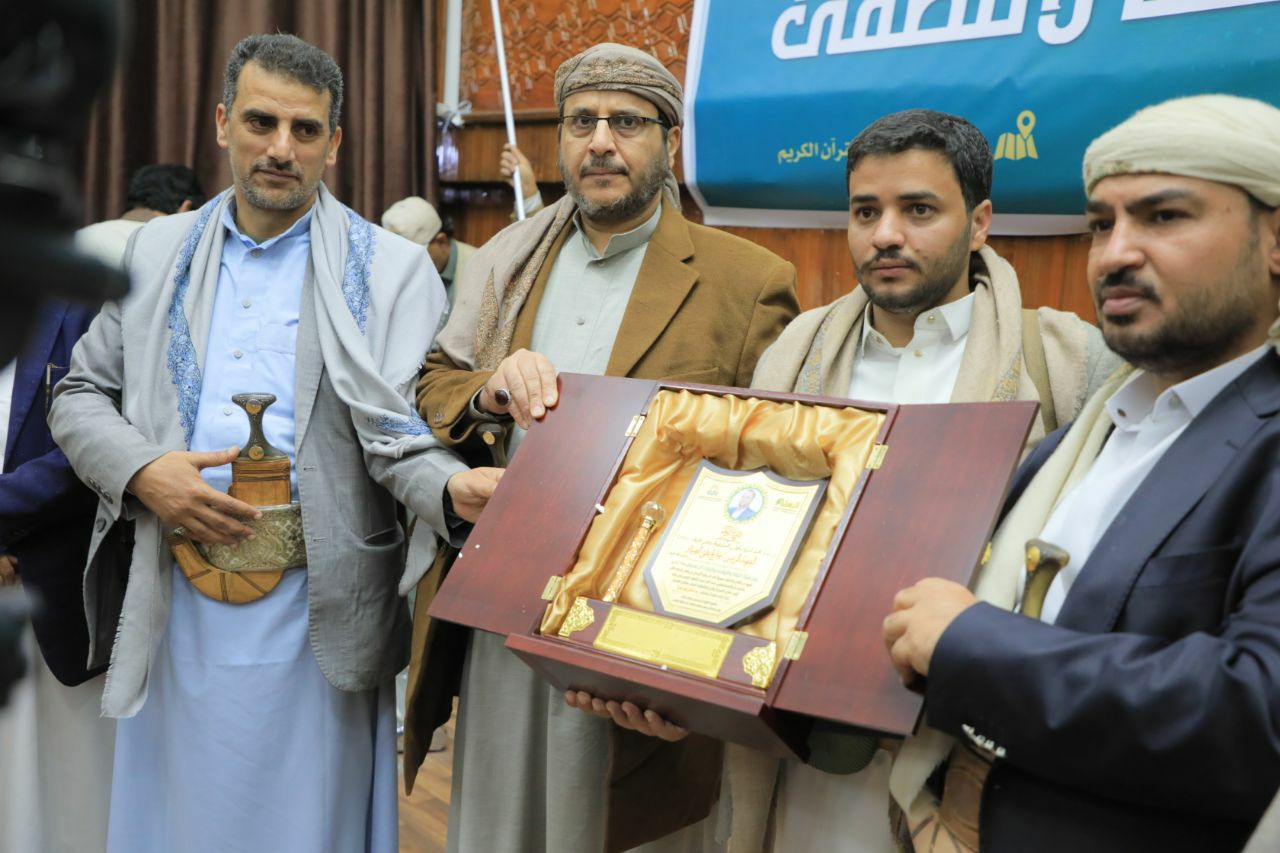 وفي ختام الفعالية التي تخللها أوبريت إنشادي لفرقة “شباب الصمود”كرم رئيسا هيئتي الزكاة والأوقاف أسرة الشهيد الرئيس صالح الصماد بدرع الوفاء تسلمه نجله فضل صالح الصماد.