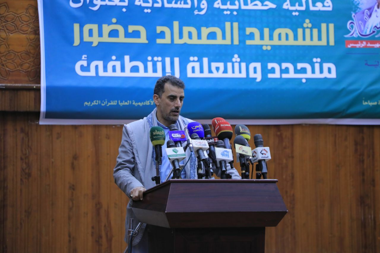 وفي الفعالية، أكد رئيس الهيئة العامة للزكاة، الشيخ شمسان أبو نشطان، أهمية هذه الذكرى التي تأتي في خضم أحداث جسيمة تمر بها الأمة مشيراً إلى أن الشهيد الصماد يمثل نموذجاً وشعلة متقدة حاضرة في كل وقت، وفي مختلف ميادين السياسة والجهاد والبذل والتضحية. واستعرض أبو نشطان سيرة ومناقب الشهيد الحاضر في وجدان وقلوب الشعب اليمني والذي كان مثالاً في العطاء وخدمة شعبه وبناء الدولة اليمنية الحديثة داعياً الجميع إلى المضي على دربه وتجديد العهد والوفاء له عبر تجسيد شعاره “يد تبني ويد تحمي” في الواقع العملي.من جانبه، أشار رئيس الهيئة العامة للأوقاف والإرشاد، العلامة عبد المجيد الحوثي إلى أن المحبة التي يحظى بها الشهيد الصماد في قلوب اليمنيين بمختلف مكوناتهم وتياراتهم، تدل على عظمة المزايا التي اختصه الله بها. وقال الحوثي: “إن هذا الإجماع الوطني على شخصية استثنائية كالشهيد الصماد لم يسبق له نظير؛ فقد تفرد بصفات عظيمة، ولمس الشعب فيه عظمة الرجل الذي لم يسخر منصبه للمكاسب المادية، بل تحمل المسؤولية بكل جدارة وأمانة”. وأكد أن الصماد اضطلع بدور محوري في مواجهة قوى العدوان والاستكبار وبذل نفسه رخيصة في سبيل الله مختتماً مسيرته بوسام الشهادة.بدوره، شدد رئيس الأكاديمية العليا للقرآن الكريم، العزي راجح على ضرورة الاستفادة من الدروس والعبر التي تخلدها هذه الذكرى للتزود بقيم المسؤولية والعفة والنزاهة، وهي القيم التي جسدها الشهيد باعتباره من خريجي الثقافة القرآنية. وأضاف: “عندما نتحدث عن الشهيد الصماد، فنحن نتحدث عن النموذج الأرقى في القيادة والجهاد والذي أصبح نبراساً يُحتذى به”.