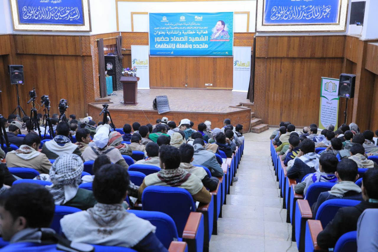 نظمت هيئتا الزكاة، والأوقاف والإرشاد، والأكاديمية العليا للقرآن الكريم، اليوم، فعالية خطابية وإنشادية بمناسبة الذكرى السنوية لاستشهاد الرئيس صالح الصماد، تحت شعار “الشهيد الصماد.. حضور متجدد وشعلة لا تنطفئ”.