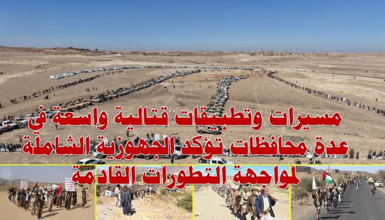 مسيرات وتطبيقات قتالية واسعة في عدة محافظات تؤكد الجهوزية الشاملة لمواجهة التطورات القادمة
