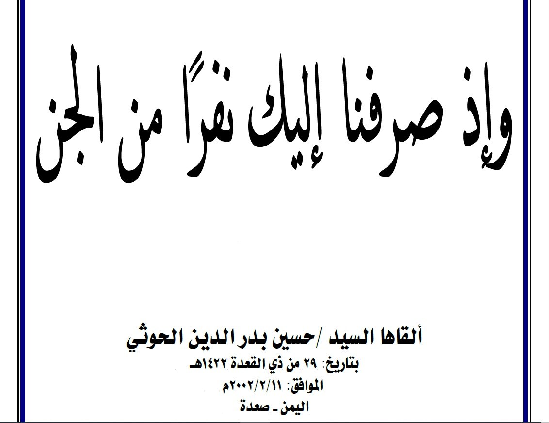 الله قال عن الجن: {وَإِذْ صَرَفْنَا إِلَيْكَ نَفَراً مِّنَ الْجِنِّ يَسْتَمِعُونَ الْقُرْآنَ فَلَمَّا حَضَرُوهُ قَالُوا أَنصِتُوا فَلَمَّا قُضِيَ وَلَّوْا إِلَى قَوْمِهِم مُّنذِرِينَ قَالُوا يَا قَوْمَنَا إِنَّا سَمِعْنَا كِتَاباً أُنزِلَ مِن بَعْدِ مُوسَى مُصَدِّقاً لِّمَا بَيْنَ يَدَيْهِ يَهْدِي إِلَى الْحَقِّ وَإِلَى طَرِيقٍ مُّسْتَقِيمٍ يَا قَوْمَنَا أَجِيبُوا دَاعِيَ اللَّهِ} (الأحقاف:29- 31) كان موقف الجن موقفاً جميلاً، موقفاً متكاملاً من بدايته إلى نهايته على مستوى عالٍ من الأداء، جعل ذلك الموقف جديراً بأن يسطره الله في القرآن الكريم، وأن يجعله عبرة للإنس.